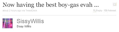So for bragging about her “boy-gas,” Sissy Willis gets the Worst Tweet of the Year.