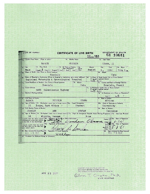 But it does create another question: if it was so easily obtained, why the three year delay? Was Obama simply letting the "little" people know that he only plays by HIS rules, not by the rules of the country? And note the date on the "certificate", April 25, 2011. Just two days ago.