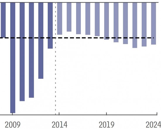 The budget office warned that the aging of the population, rising healthcare costs and increasing interest payments on the debt will bring about the return to $1 trillion deficits by 2024 in the absence of legislative changes.