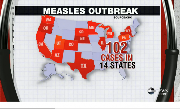 Last week, there were 14 states with 102 infected citizens and public health officials were warning that the outbreak of this formerly eradicated disease was going to spread. It looks like that prediction is true.