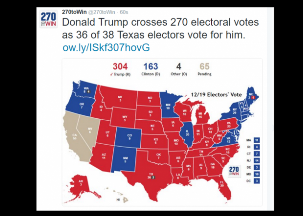 Texas puts @realDonaldTrump over the top in #ElectoralCollege pic.twitter.com/72A7lGyqFV