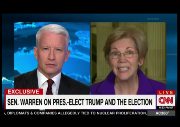 Warren quickly went on the defensive and tried to hide behind the popular vote: “Out of touch when 2.3 million more people voted for the democratic candidate than the Republican candidate.” She went on to point to how the Democrats picked up seating in the House of Representatives and the Senate. But the facts is, that before the election every liberal commentator predicted that the Democrats would take back the Senate and possibly the House.