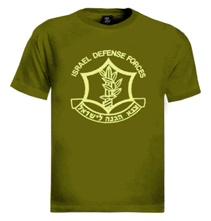 Notice the shirt she is wearing? It is an Israel Defense Forces t-shirt, available on-line at Judaism.com (and possibly elsewhere):
