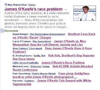 Max Blumenthal at Salon.com declared James O’Keefe to have a “race problem,” which are just code words for being a racist.