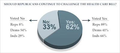 Update 3-25-2010: Rasmussen new poll shows similar results, 55% Favor Repeal of Health Care Bill.