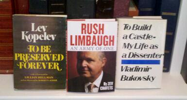You can't be serious. I know very little of Lev Kopelev and Vladimir Bukovsky's lives. I DO know, however, how many outrageous things Rush has said over the years. Has he been mistreated on occasion by the liberal media? Absolutely. Is he deserving of having his biography placed on a 'hallowed' place on your bookshelf? No chance.