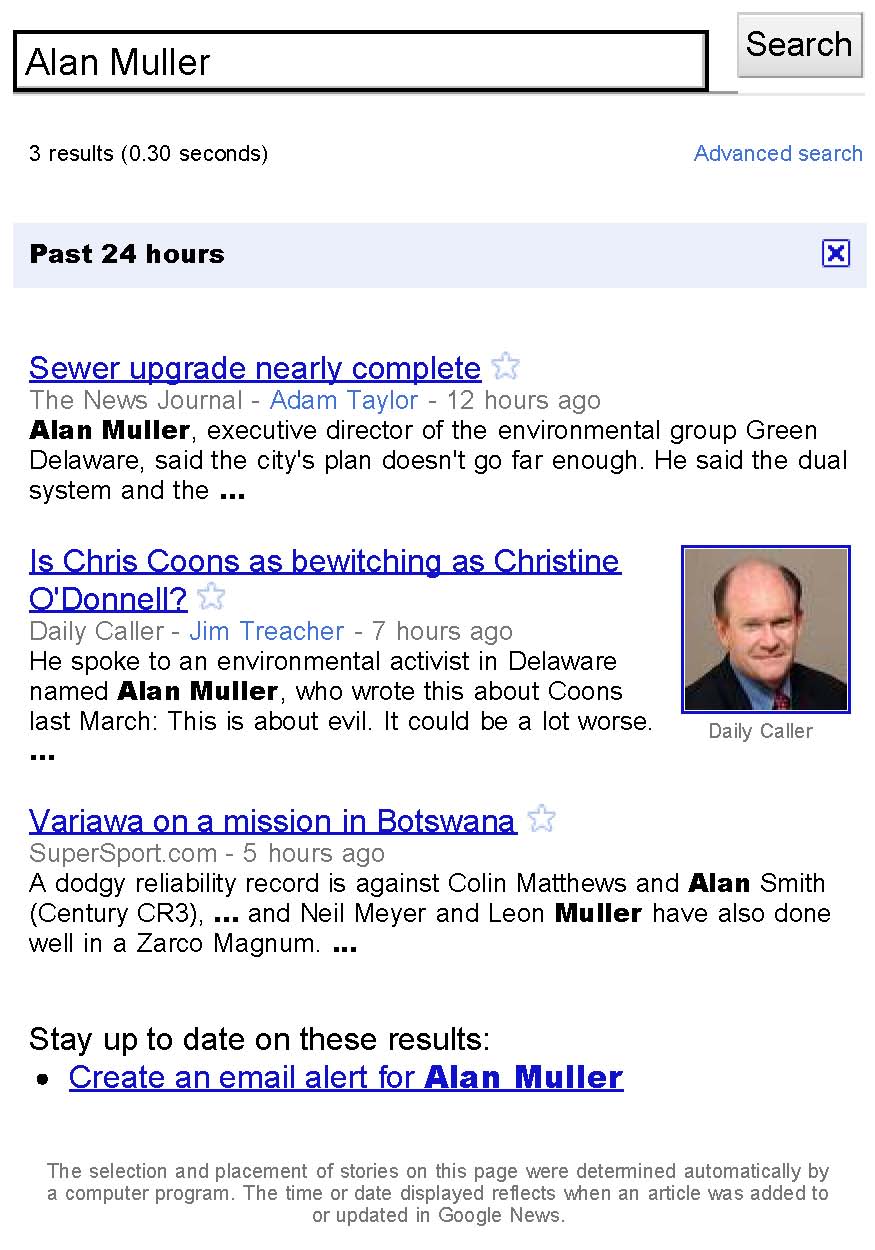 The details are in the post, but the mainstream media is silent. A Google News search with Muller’s name turns up a whopping 3 news items in the past 24 hours, one of which was by The Daily Caller Blog. The only “hard” news story was about a sewer upgrade dispute in which Muller is involved on behalf of an environmental group.