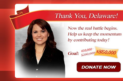 Well, she'll need every penny of that $750 grand and four or five times that much. I really do hope I'm wrong and that she finds a way to win. But enthusiasm from the troops has its limits, and these are some of the cold hard facts about little Delaware.