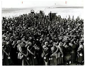 The deserters beseech the soldiers to come over to their side, which does happen, as the soldiers pull the General off his horse and beat him to death.