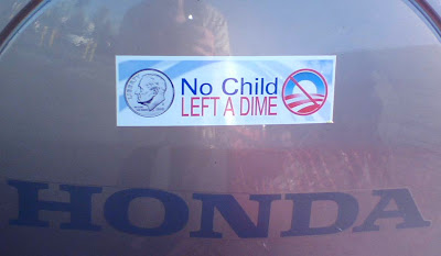 What timing.  Earlier today a reader sent me this photo, which she took in Athens, TN, for my bumper sticker collection:
