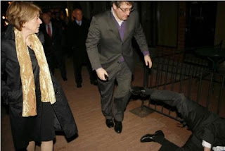 She was representing Move-On.org, so she said. They appear to have nothing to say about this apparent wack-a-doodle victim, except to milk the foot stomp. This could have been a nice story about the fragile state of Obama's faithful but instead we just have a guy using his foot on a woman. Very bad and Rand Paul didn't need this.