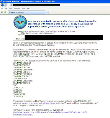 A reader in the military just forwarded me this screenshot showing that the Department of Defense computer system has been upgraded to block internal users from accessing Legal Insurrection: