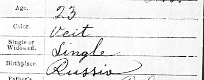 Okay, so the clerk asks your great-grandmother "color?" and she answers in her Russian-accented English "veit" (white) – and instead of lifting his head to make his own determination, he writes what he hears.