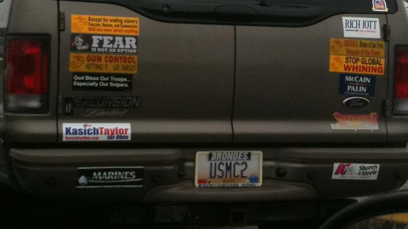 I was going to hold off on the bumper sticker photo below, sent to me by a reader in Ohio.