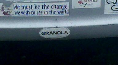 But did you ever imagine in your wildest imagination that someone would put a granola bumper sticker on her car?