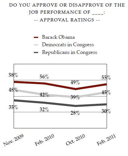 Look at the chart below from the Harvard poll. It shows increases in approval for everyone, including Republicans and Democrats in Congress. Here is the chart from the executive summary of the poll:
