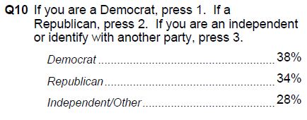 Here is the sample breakdown in the recent PPP poll, 38% Dem, 34% Rep, 28% Ind: