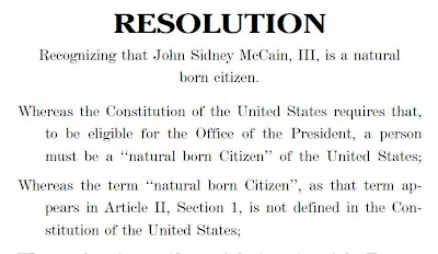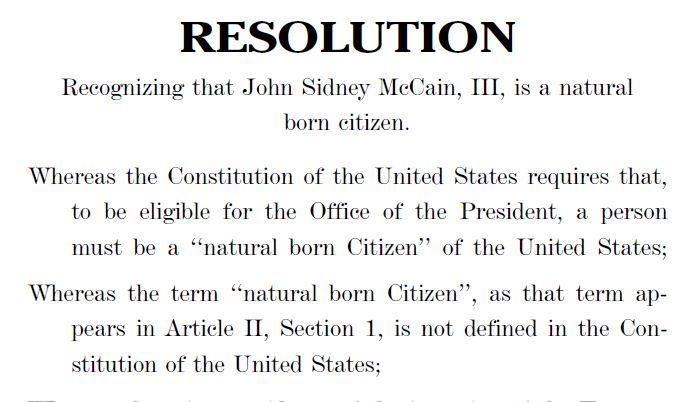 There also this thing called the United States Senate. And it has a website too. And if Mr. Pitts had searched really hard, Mr. Pitts could have found a document. And that document was a Resolution. And the Resolution, co-sponsored by Barack Obama, declared that John McCain was a natural born citizen. You see, questions about whether John McCain was eligible to serve as President were so prominent that the United States Senate took up the issue (although I’m not sure it’s determination is binding).