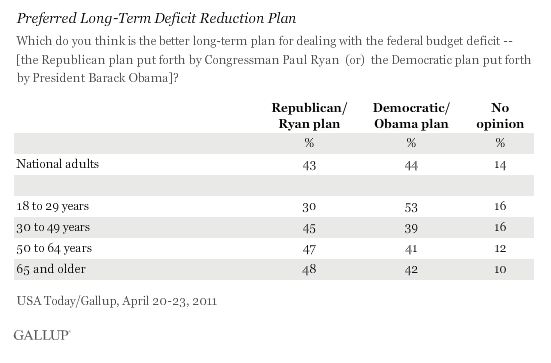 Update: A Gallup poll just released shows strong support for Ryan’s plan among all age groups except 18-29, and the support gets stronger the higher the age bracket: