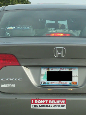 It's not such an odd combination. I had to blow the photo up 400% to see it, but the Obama sticker has the words "impeach him" under Obama.