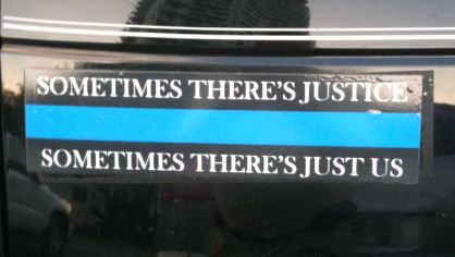 Yeah. Down here in the south, the sticker with the 'Thin Blue Line' on it, is a get out of being stopped by the po-po sign. It signifies that you are a LEO. This one just happens to have more porcine propaganda on it than usual.