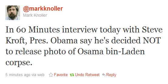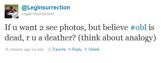 They'll have to release them. This is the same stupid move that they made with trying KSM in NYC, closing Gitmo, etc. And the photos will come out, and the WH, instead of controlling (however ineptly) the narrative, will instead look like the amateurs they are. Always reacting just a shade too late and just a smidge off base. Pathetic.