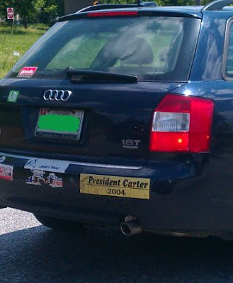 Thanks to reader Dave, who sent this note accompanying the photo of a “Re-Elect President Carter 2004” bumper sticker: