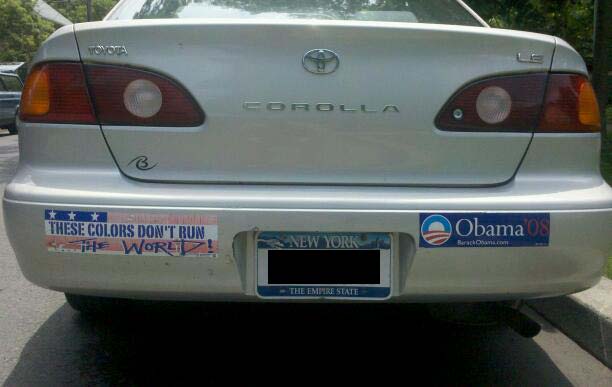 My guess is that the owner of this vehicle not only objects to these colors running the world, but also is part of the open borders crowd which objects to these colors even running our own country.