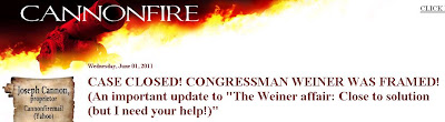 In fact, maybe Cannonfire will next suggest that the obvious reason Weiner is refusing to resign is that Breitbart told him not to, and that Andrew will now be exploiting the "hold" he has over Weiner, by inducing him to take public positions that Weiner would never ordinarily take, and cast Congressional votes that he would ordinarily never cast!