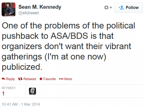 One of the problems of the political pushback to ASA/BDS is that organizers don’t want their vibrant gatherings (I’m at one now) publicized.