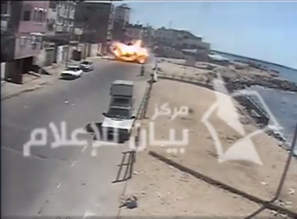 Unverified footage posted to YouTube on Saturday appears to show the Israeli air strike carried out Friday afternoon on a car carrying two operatives belonging to the Popular Resistance Committees, a coalition of armed groups in Gaza.