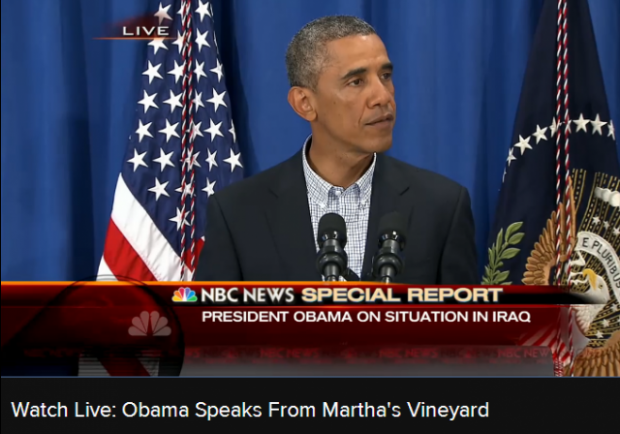 In what has become a nearly daily occurrence, President Obama summoned the media to discuss the situation in Iraq (and Ferguson, Missouri) from his vacation spot in Martha’s Vineyard.