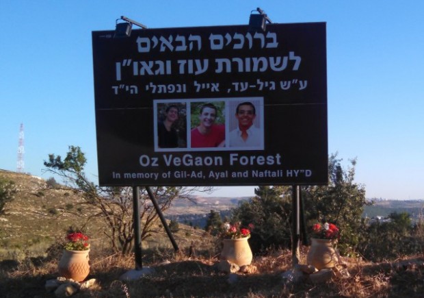 While driving on the way back from Hebron, I saw a sign (Featured Image), designating a forest in the memory of the three teens. It is at the Gush Etzion junction in an area of settlements near where the teens were abducted.