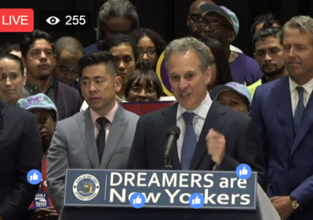 New York Attorney General Eric Schneiderman, in a Facebook live event, announced that New York and 14 other states plus the District of Columbia have filed a Complaint attempting to halt the phasing out of the DACA program as announced yesterday by U.S. Attorney Jeff Sessions.
