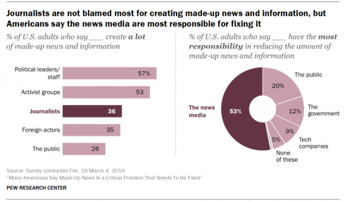 Despite that, 53% of Americans believe that journalists “have the greatest responsibility to reduce it.”