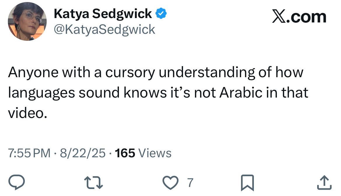Anyone with a cursory understanding of how languages sound knows it’s not Arabic in that video.