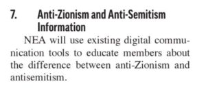 “NEA will use existing digital communication tools to educate members about the difference between anti-Zionism and antisemitism.”
