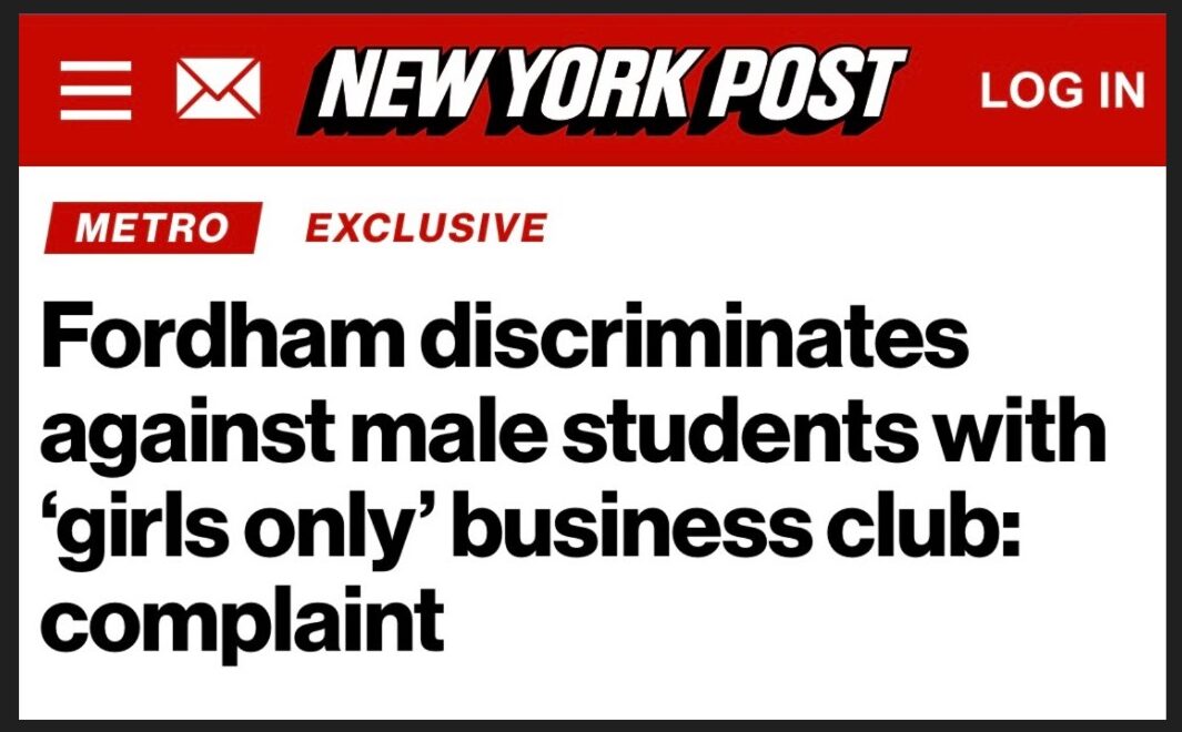 On September 26, 2025, we filed a Civil Rights Complaint against Fordham University regarding its “Girl Boss” undergraduate and graduate programs that discriminate against male students. From the Complaint: