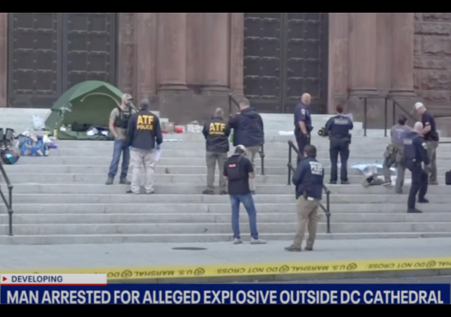 D.C. police’s Explosive Ordinance Disposal team and the Arson Task Force searched Geri’s belongings at the cathedral. Police say the scene has been secured and there is no threat to the public. The front entrance to the cathedral and the 1700 block of Rhode Island Avenue in Northwest D.C. remain closed as the investigation continues.