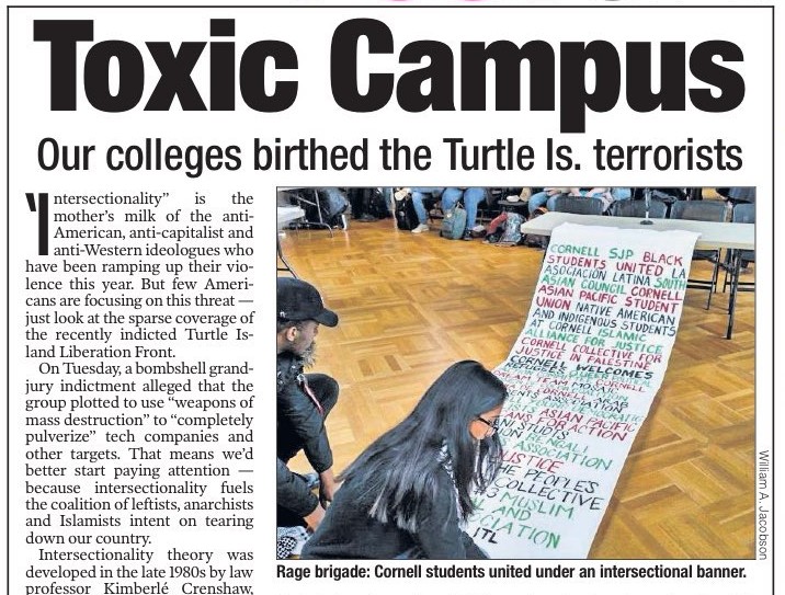We have intersectionality to thank for the widespread rot in higher education… Worse, intersectionality has become the ideology of terror. Enter the Turtle Island Liberation Front, a walking embodiment of intersectionality.
