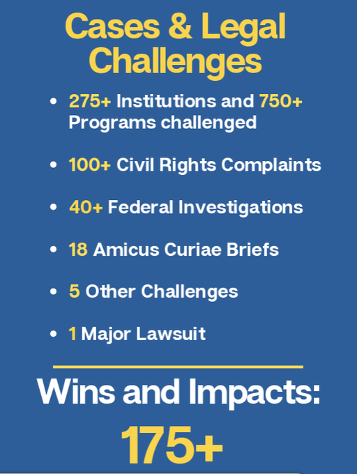 At our Equal Protection Project, we have been working non-stop to force schools to abandon unlawful civil rights violations done in the name of DEI, and we have had great success. (Full Impact Report here.)