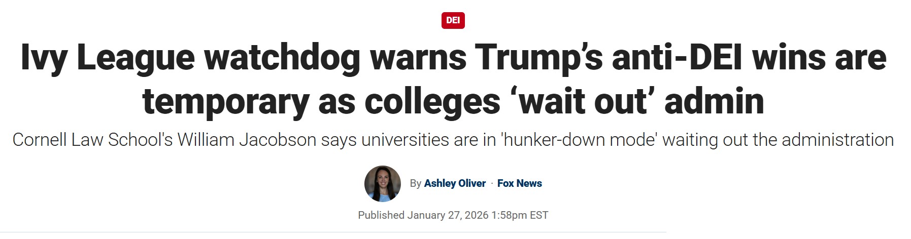 Professor William Jacobson, who has worked at Cornell Law School for nearly two decades, told Fox News Digital in an interview that the Republican-controlled executive and legislative branches have urgent work to do if they want their efforts to end diversity, equity and inclusion to have lasting power whenever Democrats regain power in Washington.