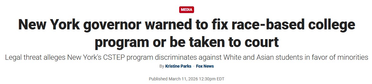 In a demand letter sent Wednesday and obtained by Fox News Digital, the Pacific Legal Foundation (PLF) and the Equal Protection Project (EPP) urged Hochul and Education Department Commissioner Betty A. Rosa to change the state-funded Collegiate Science and Technology Entry Program (CSTEP), arguing it violates the Equal Protection Clause by authorizing eligibility based on race and ethnicity.