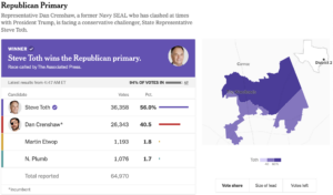 With 94% of the votes in, Toth leads Crenshaw 56% to 40.5%. Sheesh.