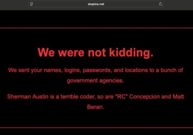 “Hello, StopICE.net. All your logins, locations, passwords, and phone numbers have been given to the FBI and ICE.”...