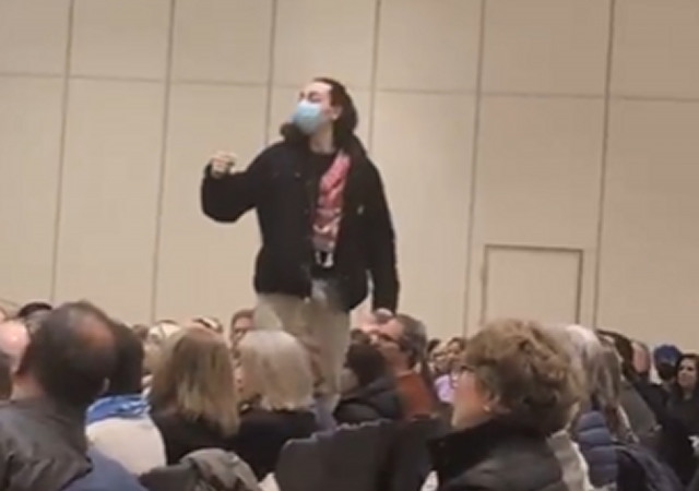 "Ezra Klein, you're a liar, you set Palestine on fire"...