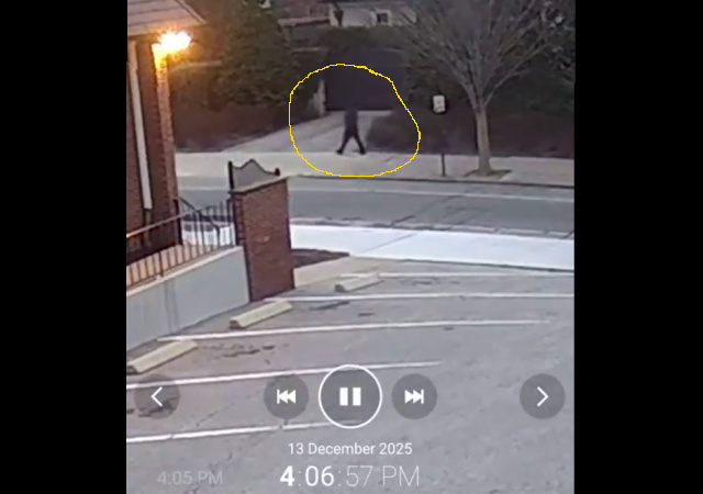 Surveillance video released by police shows the suspect, dressed in black, calmly walking away from the scene, according to authorities cited in early reports....