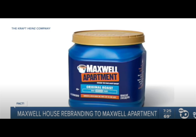 "To celebrate the name change, Maxwell Apartment is offering a '12-month lease' of their coffee as a way for consumers to stock up on coffee for the entire year, according to the news release."...