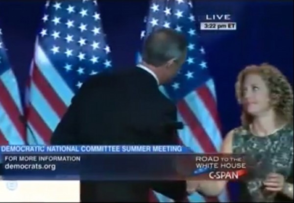 After O'Malley's speech wrapped up, observers noted palpable tension as he greeted DNC Chair, Rep. Debbie Wasserman Schultz.